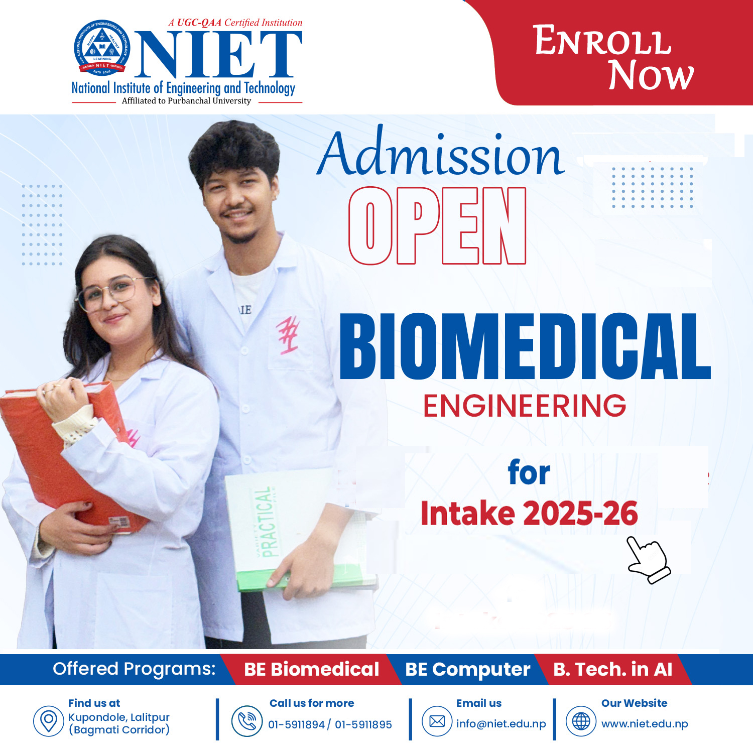 NIET is the one & only college for Biomedical Engineering in Nepal.